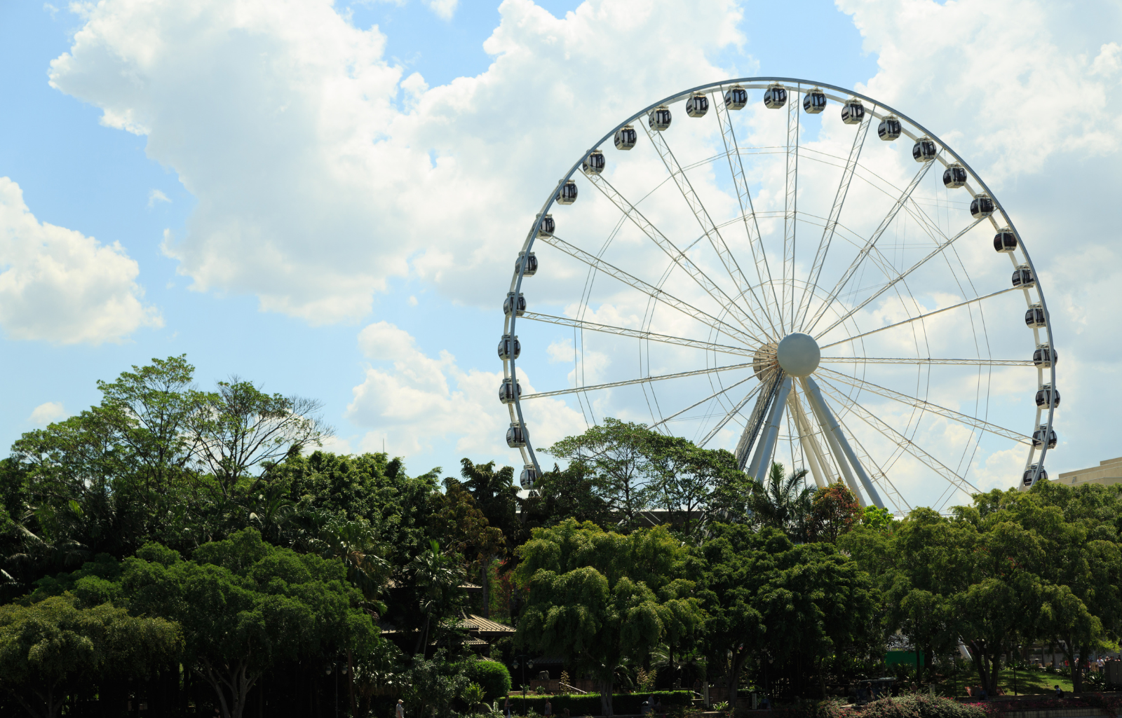 The Brisbane Wheel, which soars to a height of 60 metres, offers stunning views of the city and the river below. The massive Ferris wheel can be seen from a great distance away since it is situated just at the entrance of the South Bank Parklands. In the evening, when it is magnificently lit against the starry sky, it appears very menacing. It takes just under 15 minutes for a ride in the air-conditioned pods; from above, Brisbane appears to spread out in the horizon with magnificent beauty.