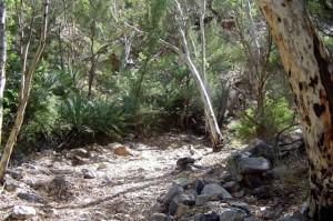 There is a walking track that links the car park to the Chasm and it follows a creek where there are many spring-fed pools. Because of these pools, the gully floor is lush with a variety of plants including the cycad palm, a species that is known to have survived from prehistoric times when this whole area was supposedly an inland sea.