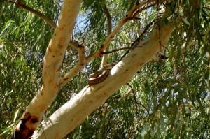 The Emily and Jessie Gaps Nature Park was our last stop along the Ross Highway. Only 10 kilometres (6 miles) from Alice Springs in the Heavitree Range, these two gaps, worn away by a creek flowing through the MacDonnell Ranges, are of great significance to the local Aboriginal people and contain a lot of rock paintings and, along with many other places in the landscape that are associated with the same Caterpillar Dreamtime story, is part of the “Dreaming Trail”. Emily Gap is probably the most significant as this is where the caterpillar beings originated. We decided to stop for lunch while we were at Emily Gap and it was here that we discovered the first wildlife of this trip. A python was asleep up in the branches