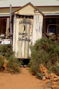 This country is so beautiful; bare, desolate, and miles of red dirt but beautiful nonetheless. We were surprised by the number of goats along the sides of the road and hoped that one wouldn’t stray into our path. That could really put a dent in our holiday, not to mention the car! We pulled in to Emmdale Roadhouse, approximately 296 kilometres (184 miles) east of Broken Hill, at about midday. The place hasn’t changed from the last time we were here, and that includes the restrooms.