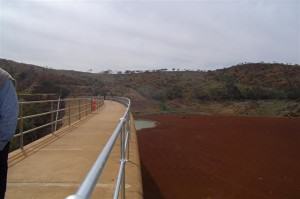 wall and we simply followed them, not knowing that we weren’t supposed to be there! That poor man almost had a fit when he saw all those people standing on the dam wall! Umberumberka Reservoir is 9 kilometres (5½ miles) west of Silverton. Completed in 1915, it has a catchment area of 407.5 kilometres (253 miles) but the average rainfall here is only 225 millimetres (9 inches). Near the parking area there are some picnic tables and a steam museum that has some interesting pieces of old equipment; they actually look like little silver flying saucers!
