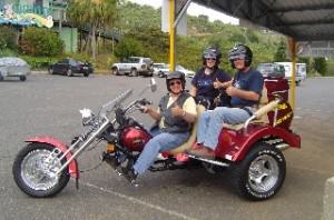 Meanwhile, we were having a blast! Our rider, Keith, was terrific. He took us up the Pacific Highway for a short way and then back towards town before coming back to the Big Banana and making a circuit of the parking areas. We waved at everyone and most folks waved back; those that didn’t were probably envious! Adventure Trike Tours has mature riders who put your safety first and ensure that your ride is fun and exciting. I know we’ll be going back on our next visit to Coffs Harbour and then it’s going to be a longer ride!