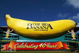The next morning the temperature had climbed long before breakfast time and it was hot. We decided today that we couldn’t come to Coffs Harbour and not visit one of Australia’s oldest icons, and Coffs Harbour’s most recognisable attraction, the famous Big Banana. Set amidst banana plantations this theme park is a must-see and it was right in the middle of its 40thbirthday celebrations. There are rides, plantation tours, souvenir shops, and a café specialising in all things banana. Having BJ with us limited what we could do here but not everything was a no-go.