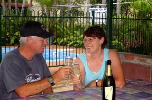 We checked in to the Boomerang Motel Caravan Park in Virginia and then, after the camp was organised, drove down to Palmerston to the shopping centre for a few supplies. It was when we were returning with our shopping that my prayers were answered and it started to rain. It was a quick, heavy shower and when it was over the humidity returned with a vengeance! But we took our bottle of Two Tails Sparkling Wine and headed for the pool where we toasted our arrival in Darwin.