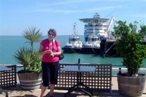 There were boats, and some more boats, and just for something different, a few more boats. John was in heaven! The Paspaley 4, one of the mother ships of Paspaley Pearls, was docked at the wharf. What a truly magnificent boat! Custom built in Norway, she is 52 metres (171 feet) in length and carries a permanent crew of 55. John was completely mesmerised as he gazed in awe at her gleaming white hull and sleek, clean lines. It was all I could do to drag him away but it was when I said I needed his credit card that I got his full attention!