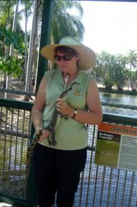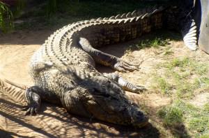 The next day was another hot day, of course. I think it’s hot the moment the sun comes up! Crocodylus Park and Zoo at Berrimah intrigued us and so this morning we set out to have a look at, and learn a few things about, the crocodiles that inhabit the Top End. Over 30 years of crocodile research and conservation has gone into this park and it currently has over 10,000 crocodiles from 30 centimetre (1 foot) babies to adults measuring 5 metres (16 feet) and weighing half a ton!