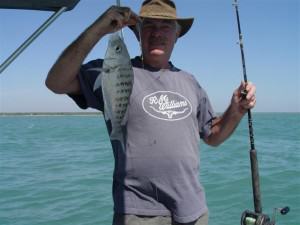 They did catch a lot of fish, so they said, but threw an awful lot back because they weren’t big enough. Right. And when they did catch something of “keepable” size, the fellow who owned the boat would snatch the fish away and have it filleted before they had a chance to photograph it! Finally John snatched the last one back after explaining that if he came back without a photo he would be the one getting filleted! They did, however, bring 9 fish back with them; unfortunately, no barramundi, only the fish they call the grunter. Now I’m not sure if they call it that because it makes a grunting sound or if that’s the sound you make when you’re trying to land the thing; I believe it puts up one heck of a fight.