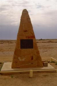 “Pioneers brought their sheep and cattle to the vastness of these Aboriginal lands before Marree was established. Drovers, cameleers, teamsters, and mailmen battled the track making development and even survival possible. Through their deeds the track became an Australian legend. This cairn honours the people of the track and commemorates the centenary of Marree 1883-1983.” South Australian Tourism.