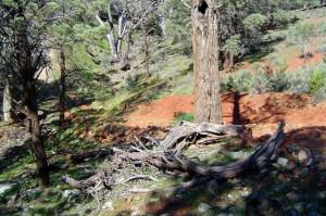 We continued on our way through the pine forest and into mallee and pine woodlands, through a semi-permanent spring, and into the creek bed known as Mary’s Folly. That’s a particularly steep descent into the creek bed followed by an equally steep ascent out of it. And that proved to be the hardest part of this track. After that we had a brief, if much-needed stop at Finlay’s Lookout before driving into the dry creek bed of Mt Craig Creek and following it through to Willow Creek and Willow Waters Gorge Road that brought us to the end of the first section of track.