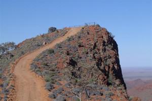 The spectacular “Ridge-top Road” culminating at Sillers Lookout was constructed by Exoil NL in 1969 to facilitate uranium exploration in these high ranges. On August 15th 1970 the Honourable Don Dunstan, Premier of South Australia, carried the first rocks to construct this cairn to support the cartographic plinthe indicating principal points of interest. Reg and Griselda Sprigg, Arkaroola.