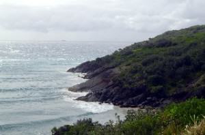 Just trying to catch a photo of it was almost impossible; it was all too fast for our little camera. We didn’t stay out there long as it was getting quite cool. Sean decided to continue on around and over the headland and would meet us back at the other end; he has more energy than we do! But at about the halfway point it started to rain; a brief but heavy shower left us dripping and the wind chilled us to the bone. We met up with Sean at the start of the walking trails and went back to camp for dry clothes, a late lunch, and a very welcome hot cup of coffee.
