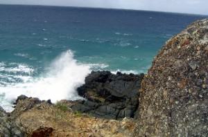 The sea was a little rough and the wind had picked up. This track is not for the faint hearted; there are no fences or a guide rail along the way; too close to the edge and it was a sheer drop. Several fishermen were perched on precarious spots along the cliff face. We didn’t ask if they were catching anything, they looked pretty busy just keeping their footing! At one point in our walk we came to what looked like a gorge with smooth rock on both sides and the surf crashing through an opening at the end. It was really quite spectacular, that foaming water almost looked like it was boiling.