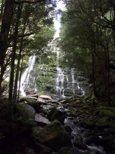 The walk through the rainforest was simply breathtaking but the falls were magnificent! I had read somewhere that the falls resembles an upside-down wineglass and I must say that is a very apt description. The water tumbles down a 30 metre (98 feet) drop to the rocks below and flows into the Nelson River. I was captivated and didn’t want to leave but, as John pointed out, we couldn’t stay there all day and so we wandered back through the rainforest and were soon back on the road. The Franklin-Gordon Wild Rivers National Park is 117 kilometres (73 miles) west of Hobart and is in the heart of the Tasmanian Wilderness World Heritage Area. It is named after the two main rivers lying within the boundary of the park, the Franklin River and the Gordon River. If we’d had more time I would have loved to explore more of the park. Maybe next time.