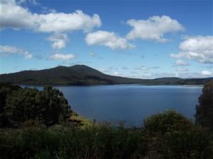 We left the national park and decided to stop for lunch at Tarraleah but when we were still about 13 kilometres (8 miles) out we came around a bend and there before us was Bradys Lake! What a beautiful setting! The mountains rising over the lake with a few houses dotted around the shore in a lakeside, bushland setting. We drove around the lake and through the small settlement before reluctantly taking our leave of this lovely place and, after a quick stop at the Teez Café in Tarraleah for lunch, arrived at the Treasure Island Caravan Park in Berriedale just before 4:00.