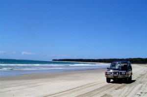 At Shark Bay (not to be confused with Shark Bay in Western Australia) there is a 4×4 beach access track and we thought we would drive along the sand towards Black Rocks where there is a camping ground. John wanted to have a look, for future reference, he said with a grin. There were several vehicles on the beach; I think we must have arrived at peak hour! And there were quite a lot of people fishing. I wondered if they were catching anything but didn’t want to broach the subject with John in case he decided to throw in a line himself.