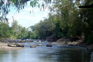 We took the Arnhem Highway into Kakadu and stopped for lunch at the Bark Hut Inn at Annaburroo, an historic icon approximately halfway between Darwin and Kakadu. The Mary River wetlands and Rock Hole billabong are close by and the inn offers accommodation and other facilities for those who want to explore the area. There was a tour bus parked outside when we arrived and the driver was in the mood to chat while he waited for his passengers. He very kindly told us of some of the best places to see and, more importantly as far as John was concerned, where to catch the best fish.