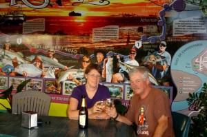 We went into the town to Ash’s Café for a fish and chip dinner that first night and took our bottle of Two Tails Sparkling Wine with us to celebrate a first night in Karumba. John, especially, was excited to be here and was looking forward to some great fishing.