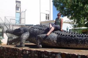 Driving down the main street it was impossible to miss the Krys Savannah-King monument. This is a life-sized model of the largest crocodile ever caught. At 8.63 metres (28 feet 4 inches) long and with a girth of 4 metres (13 feet), it truly was a monster. It was shot on the Macarthur Bank of the Norman River, downstream from Normanton, in 1957 by Krystina Pawlowski, a professional crocodile hunter, and it is estimated that the creature weighed over 2 tons. The model is located in the LEW Henry Park, near the Council Chambers and I couldn’t resist climbing onto the back of it. It’s the closest I ever want to get to the real thing!