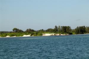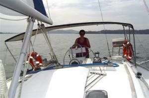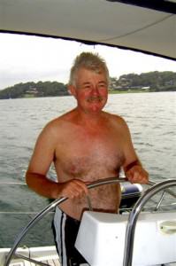 We weighed anchor about 10:00 and motored around to Summerland Point and on past a few of the bays looking for a beach where we might swim but no luck. We motored around Point Wollstonecraft and back towards Pulbah Island, through the channel between Wangi Wangi Point and Galgabba Point, and anchored just off Elizabeth Island; we’d found our beach! We didn’t want to take the yacht into shallow water even though it has only a 5’ keel (I sound like I know what I’m talking about, don’t I? Ha!), so we took the dinghy, a zodiac, across to the beach. The water was not cold at all and shallow for quite some distance out and we stayed there for about a half hour. A swim and a walk on the sand were just what we needed; it was a very warm day. A strong breeze was blowing by the time we decided to leave the beach; it was time to go sailing! Back aboard the Pisces, John set the sails and we were off.