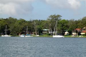 The breeze was nowhere near as strong as it had been the day before which made things easier for me; my second lesson was much more pleasant and successful! Well, at least we didn’t go around in circles this time! We explored Kilaben Bay and Eraring Bay, marvelling at some of the beautiful houses lining the waters edge. Soon it was time to look for a safe anchorage for the night. The direction of the wind played a huge part in our choice of mooring and we sailed back around Wangi Wangi Point and dropped anchor in a little bay at the Lake Macquarie Nature Reserve opposite Pulbah Island.