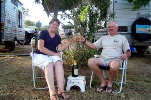 It was just on dusk when we returned to camp and settled in for our first night bubbly with our bottle of Two Tails Sparkling Wine. The evening was quite pleasant and we sat outside for a while before a cool breeze sprang up and chased us indoors. This was our second visit to Longreach, having been here some 6 years previously when we were in our tenting phase. A few drops of rain had started to fall and I was glad we weren’t tenting now!