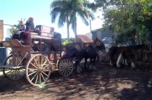 The pole runner, known in America as riding shotgun, had the job of running along the pole in the rigging to pick up the reins if the driver should drop one so that the horses didn’t break their stride. Whether Richard dropped one on purpose or not, we’ll never know but Emma certainly showed that she knows her job. It’s not something I would ever do! Our ride ended with another sedate walk along the main street. In Australia horse-drawn vehicles have right-of-way on all roads. As Richard pointed out, they don’t have ABS brakes.