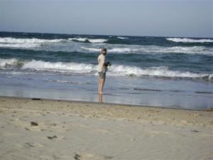 As it turned out this was not to be one of our better afternoons. A strong and quite cold nor-easter started blowing not long after we arrived. Conditions became most unpleasant with sand being blown in our faces and even BJ decided he’d rather stay in the shelter than go for a walk. The water was rough and the waves made fishing almost impossible. We stuck it out for an hour or so and then gave up. John was so disappointed with the whole afternoon that I didn’t even make any jokes about pizza for dinner! The wind howled throughout the night and showed no sign of abating the next morning as we packed up the camp ready to head home.
