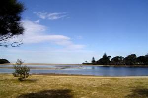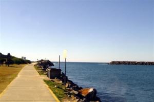 And then it was off to have a look at the beach. The sign said that dogs are not allowed on the beach so we couldn’t walk on the sand but we were to learn later that dogs are permitted on the beach north of the surf club. However the sun was going down and so was the temperature. A light wind was blowing and that made it seem colder so we returned to the warmth of our camp. John mentioned that he wouldn’t mind sitting on the breakwater with a fishing rod for a while but with my fingers, toes, and lips slowly turning blue with the cold I told him what I thought of that idea! And when a gust of freezing wind blew his cap off he had to agree!