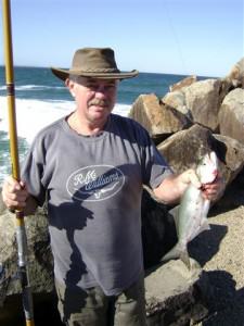 In fact you can just about see forever! It was very cold with an icy wind blowing at the lookout so we didn’t stay as long as I would have liked; there are several walking paths throughout the lookout and in the national park but John could hear a fish calling so it was back to camp for the fishing gear. I decided to spend some time getting the sand out of BJ’s coat so John wandered out onto the breakwater alone. I thought that we might join him a little later on but I seriously doubted that he would be out there too long; it had become really cold and the wind had picked up quite a bit.