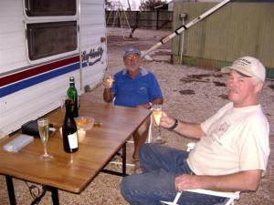 First night bubbly in Oodnadatta