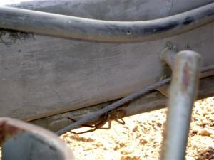 We got away from Oodnadatta early the next morning and headed towards Marla, the end of the track, some 210 kilometres (130 miles) away. Marla is only 159 kilometres (100 miles) south of the Northern Territory border and is merely a stopover point for travellers. We set off down the track and really saw nothing much more than we’d seen on our way in to Oodnadatta but we did have a moment when we stopped for a break and discovered a hitchhiker. How long this spider had been on the drawbar of our van, and where he had come from, was anybody’s guess but we relocated him to the ground and he scurried away. I guess bouncing out of his britches on this track was not to his liking either.