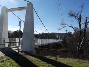 I didn’t argue; I was feeling guilty over the fishing or rather my lack of enthusiasm for it. So we decided to drive out to Googong Dam, the largest dam in the Queanbeyan region, but on the way we took a little detour to the heritage-listed Pedestrian Suspension Bridge over the Queanbeyan River. The original bridge was built in 1901 to replace the stepping stones that had been used to cross the river. I can imagine there were a lot of wet feet, at the very least, in those days! Not to mention the odd inebriated fellow going for an unexpected dip on his way home! The bridge was washed away in the floods of 1925 and they were back to stepping stones until the current structure was completed in 1938.