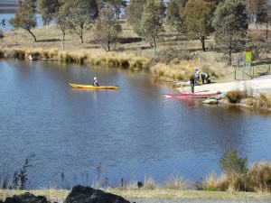 We returned to the Foreshore carpark and into a small picnic area overlooking the boat ramp. Several kayakers were just pushing off and there were one or two guys fishing. Don’t know if they were catching anything but, as I’ve said before, sometimes the art of fishing has very little to do with actually catching fish. Swimming is permitted but only in the Queanbeyan River below the dam wall. We had noticed a couple of hardy souls taking a dip when we were on our walk. Now, it was a lovely sunny day and somewhat warm-ish but it wasn’t THAT warm! Must have ice water in their veins, is all I can say!