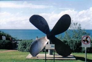 On the Esplanade overlooking the beach is the propeller from a large cargo ship, The “Cherry Venture” that ran aground in 1973. The 1451 tonne (1600 ton) empty cargo vessel floundered in heavy seas with swells estimated to be up to 12 metres (40 feet) high, and wind gusts up to 120 kilometres (75 miles) per hour. The ship’s anchor cable parted and the Cherry Venture was unwillingly beached.