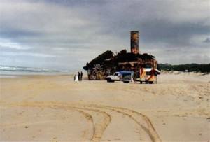 I wanted to see this boat and so we bounced our way along what can only be described as a fire trail and finally exited onto the beach. What a fascinating sight! There she sat in all her glory, after 30 years. Over the years vandals and graffiti artists had had their go at the wreck and she’d been spray-painted with various slogans. Of course she was roped off and entry was strictly forbidden because it was considered too dangerous but that didn’t stop some of the more foolhardy ones from climbing up on her. The Cherry Venture was still a majestic sight and not the years, the weather, or the vandals could take that away from her.