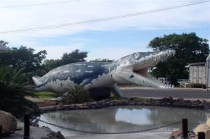 There are fossilised remains of the Kronosaurus Queenslandicus, the biggest and most savage marine reptile ever discovered; it would even go after an allosaurus, cousin to T-Rex. One of the exhibits shows the fossilised tip of Kronosaurus’ snout. At 54 centimetres (21 inches), this fragment is only the very tip of the snout, in front of the nostrils. The complete skull would be more than 2 metres (6½ feet) long. This thing could make those big crocodiles we saw in Darwin run away and hide!