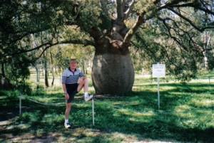 We wandered down towards the river and in Heroes Avenue we found the Largest Bottle Tree. The bottle trees were planted to comme-morate local soldiers who had died in World War I and this particular one had been transplanted to this location in the 1920’s. Its girth is 8.9 metres (approximately 30 feet). As John said, that’s a lot of firewood!