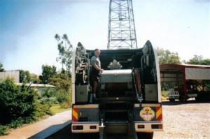 There are several displays of trucks and equipment scattered around the grounds and we wandered around for a couple of hours, inspecting the drilling platforms and trucks. We walked around them, through them, and, in some cases, over them. I, particularly, found the history of the oil and gas industry interesting. Five wells were drilled on Hospital Hill in the years between 1906 and 1929, with the express purpose of finding oil and so much oil and gas was found that a plant to manufacture motor fuel was built between 1929 and 1931. Several of these original wells have now been utilised as town water bores.