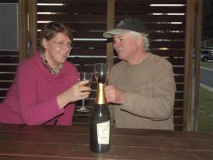 The weather wasn’t being co-operative at all with strong gusts of wind and showers, not to mention the cold, but we got the camp set up pretty quickly and took our bottle of Two Tails Sparkling Wine across to the camp kitchen to celebrate our first night in a new park. But it was far too cold to stay outside and so we retired to the welcoming warmth of the van. We’d only been inside a few minutes when there was a knock at the door. The manager of the park advised us to move our car from under the trees – just in case. And that was the start of a wild, wild night. High winds buffeted the van and heavy rain fell. At about 2:00 in the morning I started to think that maybe we should just go home and try Scotts Head another time.