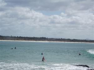 After that we drove around to Scotts Head Reserve, to the headland just past the Surf Club, where there is a lookout platform. But first I wanted to watch the surfers. Don’t these people feel the cold? I was shivering just watching them! As John, a surfer in his youth, informed me, the waves, although few and far between, were good and some of these guys managed to ride them right in almost to the beach. It’s a sport I never really could get my head around. Great to watch but balance on one of those little planks? I don’t think so!