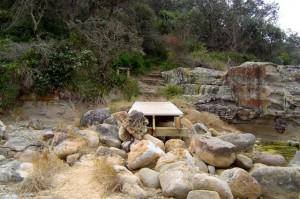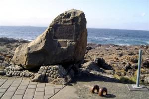 That afternoon we drove out to Bass Point, an area that is of such great archaeological significance that it’s listed on the Register of the Australian Heritage Commission. The Bass Point Reserve is a rainforest area and within the Reserve is Bushranger’s Bay, a Marine Aquatic Reserve that is very popular with scuba divers. Unfortunately, dogs are not allowed on the Reserve so John stayed with BJ while I went for a little walk to the Cities Service Boston Memorial. The Cities Service Boston, an American tanker, ran aground off this point in May 1943.