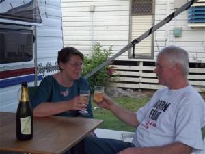 After camp was set up we wandered off into the town to have a look around and for John to check out the best fishing spots. I made sure there was a chicken shop close by. And then we headed back to the park and settled in with our bottle of Two Tails Sparkling Wine to celebrate our first night in a new caravan/tourist park. Later that night we were woken by a huge thunderclap, some brilliant flashes of lightning, and one torrential downpour. Unfortunately it didn’t cool things down much and it was still hot and humid the next morning.