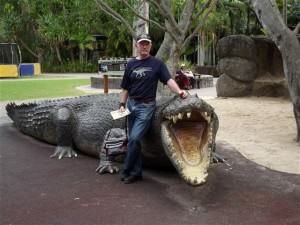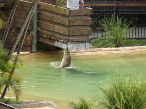 The brain-child of the late Steve Irwin, it’s a wonderful tribute to him and a credit to his widow, Terri, who has continued his work since his untimely death in 2006. Established in 1970 by the Irwin family and known then as the Beerwah Reptile Park, Australia Zoo was born in 1992 when Steve and Terri Irwin took over as managers. Its original 4 acres (1.62 hectares) has expanded to over 70 acres (over 28 hectares) and is Australia’s number one tourist attraction (Australian Tourism Awards 2008). We arrived at a little after 10:00 and, along with hordes of children on school field trips, made our way into the zoo. The rainforest-like design features animals in enclosures that closely resemble their natural habitat. From the rhinoceros iguanas at the front entrance through to kangaroos, koalas, Tasmanian devils, and, of course, crocodiles, the whole zoo is simply amazing.
