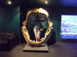 After such a huge lunch we really needed a walk but the sun was fierce and I was already starting to burn. So what better place could there be to have a walk and yet stay indoors than Underwater World at Mooloolaba. All I can say about it is ‘fantastic’! The exhibits were stunning, from the ‘Weird and Wonderful’ where I stood inside a replica jawbone from a prehistoric shark, the Megalodon, the largest shark ever found that lived around 25 million years ago, to the ‘Fresh and Freaky’ that included the nasties of our river systems, even a freshwater crocodile. There was ‘Billabongs and Backyards’, ‘Crawly Creatures’, and ‘Otter Empire’ but my favourite was ‘Sharks Alive’.